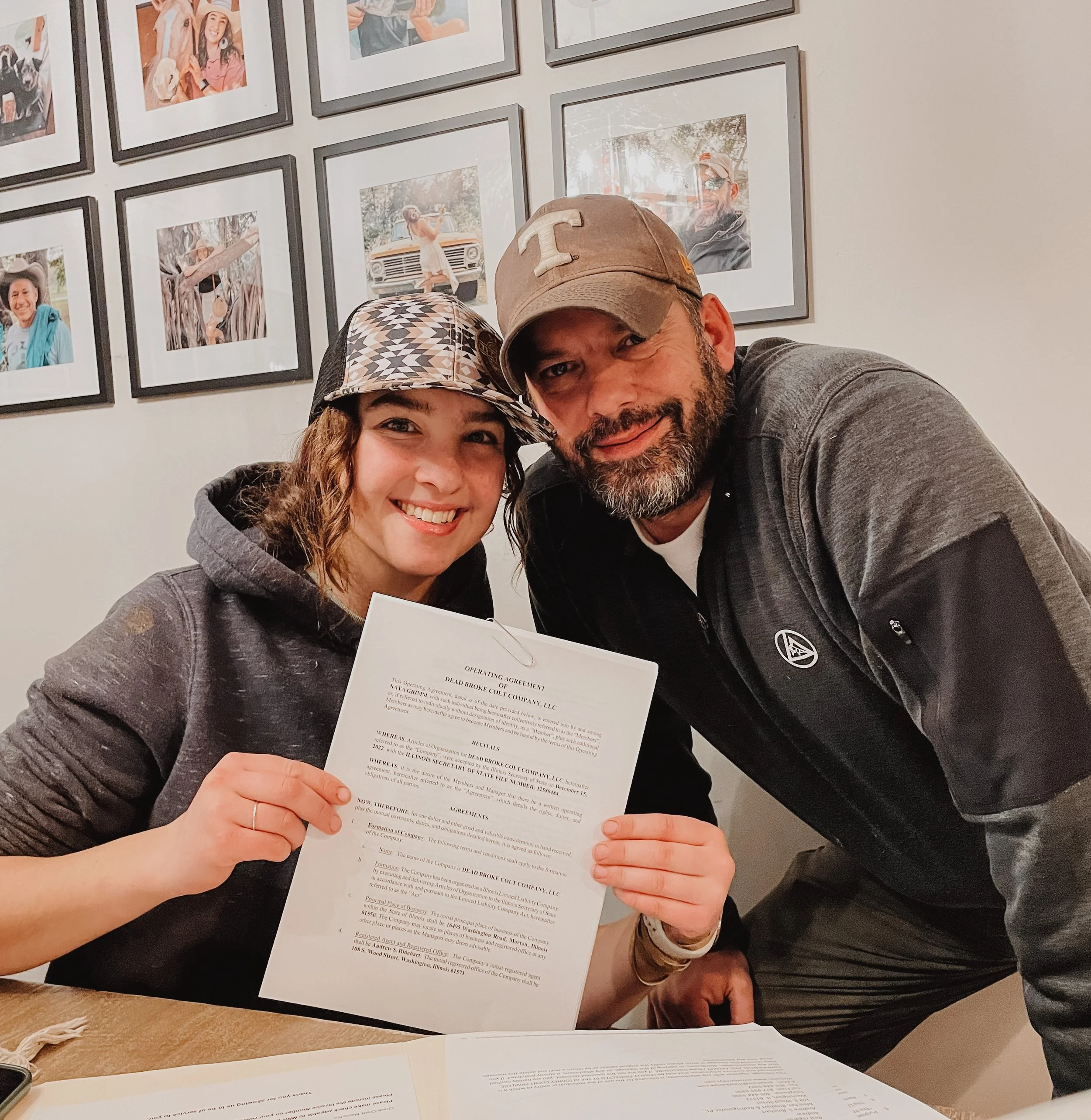 My Dad and I after receiving the paperwork for Dead Broke Colt Company